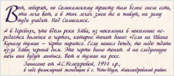 Например, в одном из известных произведений древне-русской литературы XII века «Повесть о Савве Грудцине» главный герой – житель Соли Камской заключает договор с дьяволом. С одной стороны, Савва употребляется чернокнижнику Фаусту, жившему в первой половине XVI века в Германии. С другой, оседлав беса, и за ночь перелетев в нём за две тысячи вёрст за Волгу, Савва на пару столетий предвосхищает путешествие купца Вакулы из повести Н.В. Гоголя «Ночь перед Рождеством».