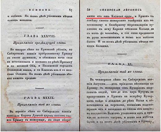 «Сибирская летопись» Саввы Есипова была издана в С.-Пб в 1824 году. Она приоткрывает немного информации на нашу путаную-перепутанную, искромсанную, перевранную сто раз историю, в частности на походы Ермака (см. рис. 2.11).