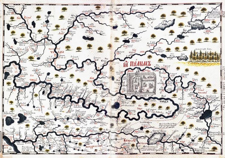Рис. 3.2. Карта Пелыма из «Чертежной книги Сибири», составленной Семеном Ремезовым в 1701 году. Фото, Интернет.