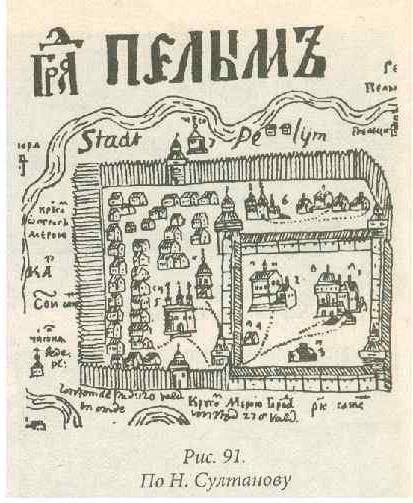 Рис. 3.3. Город Пелым на Тавде (По «Чертежной книги Сибири» Семена Ремезова, 1701 года). Фото, Интернет.