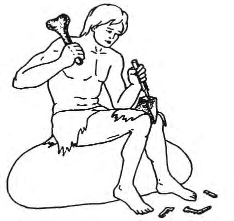 Большая хрупкость поделочного материала не особенно препятствовала техническому оснащению людей, так обилие камня и сравнительно быстрый и несложный способ его обработки позволяли легко восполнять сломавшееся или утраченное орудие. Георг Стоу и Аркадий Еремеев [2] рассказывают о случае, происшедшем c европейцем в 70-х г. прошлого века, отправившимся на охоту в обществе одного из бушменов, народ которых по праву называли одним из последних могикан каменного века (см. ниже). На охоте им посчастливилось подстрелить газель, а нож для свежевания туши остался дома. «Эка важность», – сказал бушмен и, выбрав два камня, сильным ударом одного из них по граням другого отколол длинный и острый отщеп и сделал таким образом самодельный нож, которым довольно успешно выпотрошил тело газели, а нож выбросил за ненадобностью.