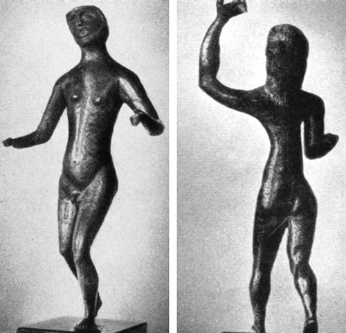 Рис. 1.21. Статуэтка танцора и танцовщицы. Из Неви-ан-Сюлли. Бронза. III–I вв. до н. э. Франция, музей в Орлеане. [100]