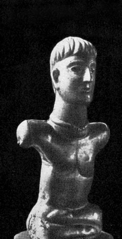 Рис. 1.20. Статуэтка на крышке кратера. Из Викс. Бронза. VI в. до н. э. Франция, музей в Шатильон-сюр-Сен. [100]