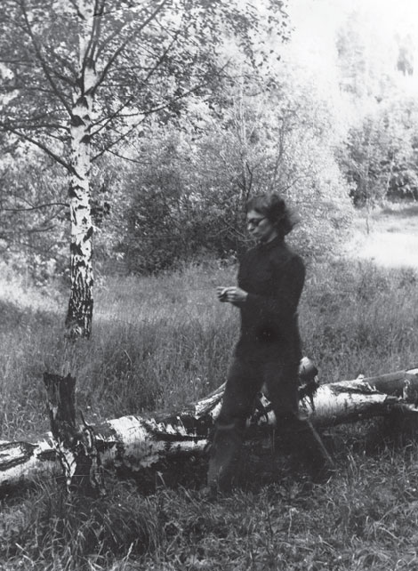 Член комиссии по проблемам биолокации, главный методист Ассоциации «Экология Непознанного» Т. В. Фаминская проводит полевые исследования аномальной зоны методом лозоходства (фото 1991 г.)