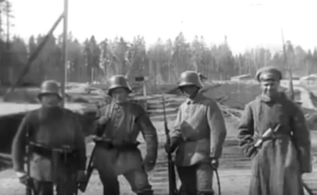 Немецкий и русский пограничный патруль на демаркационной линии в г. Орша, весна 1918 г.