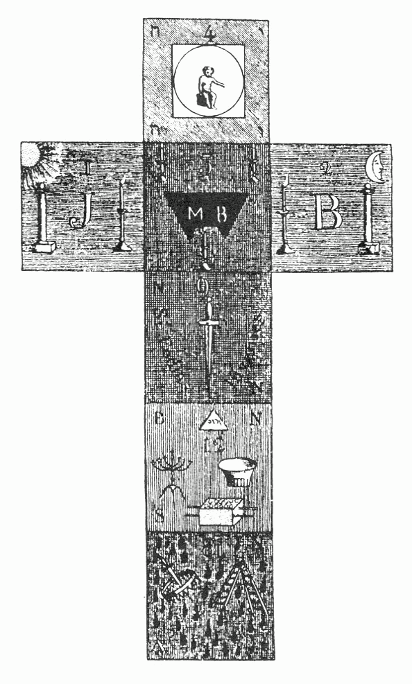 Сначала они были просты, но с течением времени, с развитием масонства превратились в целые представления, подчас очень мрачного характера. Так, например, в некоторых системах новопринимаемый вводился в ложу с завязанными глазами, и в момент, когда снимали с глаз его повязку, братья стремительно приставляли к груди его острия мечей, а один из братьев стоял в это время в окровавленной рубашке. При этом Великий мастер говорил, что мечи эти устремятся против новопринимаемого, если он нарушит клятву и союз. Затем, опять при особых церемониях, его заставляли пролить несколько капель крови в особую чашу, в которую раньше проливали кровь и прочие братья, вступавшие в орден. Это пролитие крови выражало символически соединение вновь вступившего с прочими братьями. Бывали обряды и еще ужаснее, как, например, обряд приема в степень мастера. Тут уже ложа обивалась черным сукном с нашитыми на нем блестками в виде слез, на сцену являлись черепа, скелеты, держащие зажженные светильники, картины, изображающие мертвые головы, наконец, черные гробы, в одном из которых во время церемонии лежал кто-нибудь из младших мастеров под кровавой простыней, а другой готовился исполнить роль “брата ищущего”, как назывался у масонов член, вступающий в высшую степень масонства. Этого “ищущего брата”, после довольно продолжительного хождения вокруг ложи с разными остановками и препятствиями, наконец, ввергали в гроб и накрывали окровавленной простыней, причем все остальные братья устремляли на него острия шпаг. В символическом языке масонов часто попадаются слова “циркуль”, “молоток”, “прямоугольник”, “треугольник” и прочие. Эти выражения, равно как и знаки украшения своих обрядов, они заимствовали из терминологии и строительного искусства, которым занимались их родоначальники.