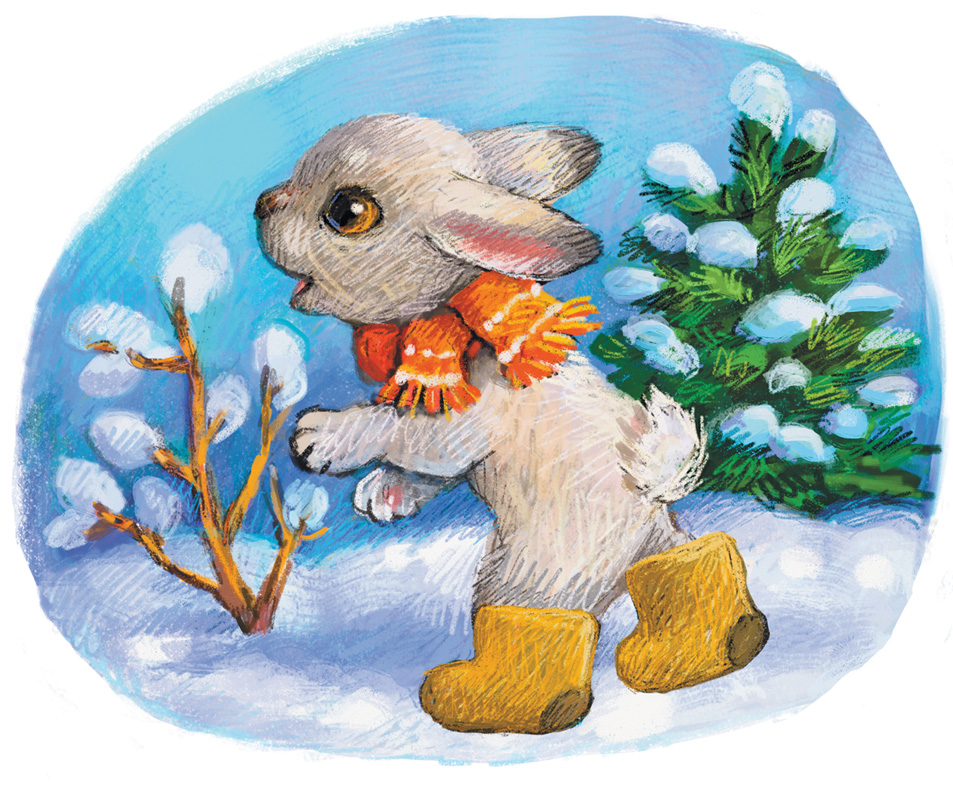 Присел тогда Заяц на пенёк и думает: «Нельзя маленькую ёлочку без праздника оставлять». И побежал он зверей созывать.