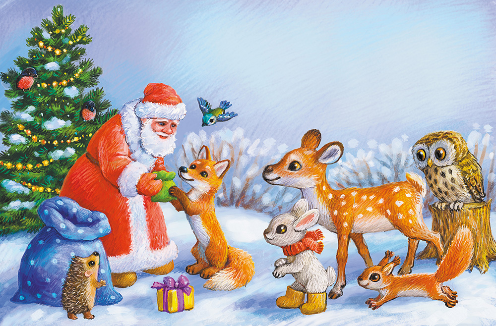 Раскрыл Дед Мороз Мешок и стал подарки раздавать. Вот обрадовались все. Песни стали петь, хороводы водить. Новый год в лес пришёл!
