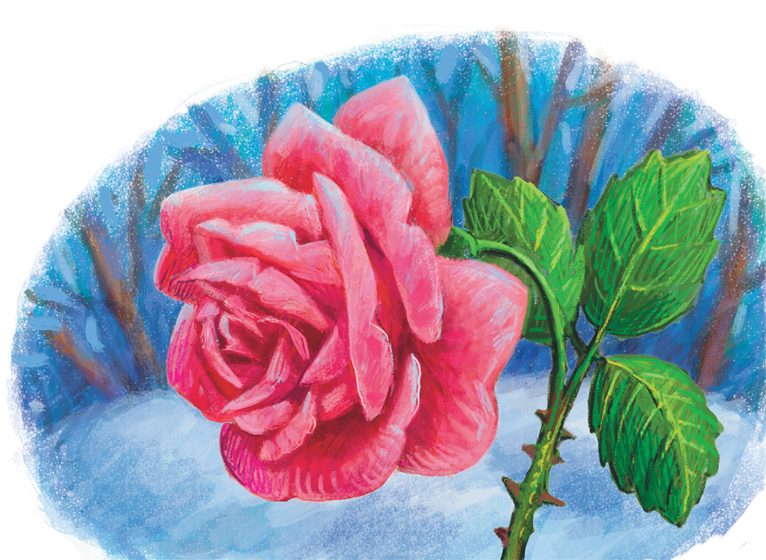 Не успела Снежинка долететь до озера, как услышала тихий плач. Он доносился с берега, из глубины сада. Снежинка подлетела поближе и увидела прекрасную Розу, которая склонила свои нежные алые лепестки к земле.