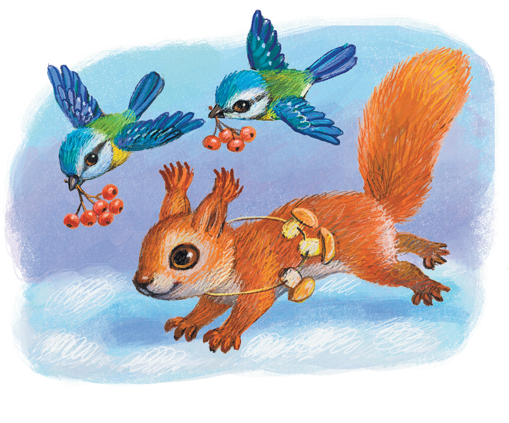 Стали тогда лесные звери ёлочку наряжать, к празднику готовить. Синички повесили на неё красные ягоды рябины, рыжая Белочка связку сушёных грибов принесла, Заяц – морковку, а Лисичка-сестричка сплела красивую гирлянду из прошлогодних цветов.