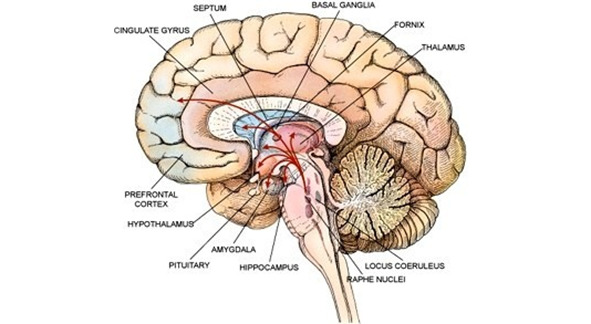 Fig. 4. Neocortex is a “human brain”; limbic system is our “animal brain”, and our “reptile, or lizard brain” is located in the brain stem. In this figure you can see several elements of the limbic system: thalamus, hypothalamus, amygdala, hippocampus, and a basal gland, all of which take part in the way our body reacts to any incoming message.