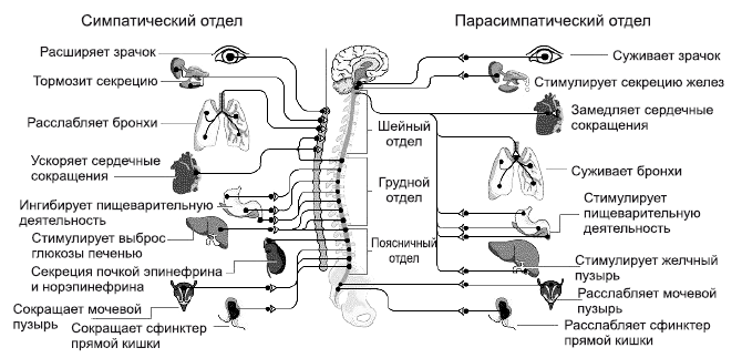 Рис. 1. Физиология вегетативной нервной системы.