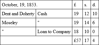 The firm of Dent, Moseley, and Doherty, gold-diggers, was formally established next day, in a clump of trees a few miles out of Melbourne. Denis had experienced no difficulty in obtaining his paltry dues from the shipping agents, but even so he and Doherty could not muster twenty pounds between them. Moseley, on the other hand, was for putting in nearly double this amount, and yet only receiving his one-third of the profits. He argued that but for the others he would have had nothing to put in at all. It was long before Denis would listen to him, and Doherty took no part in the discussion. But eventually a compromise was agreed upon, and thus entered by Denis in a new pocketbook purchased for the nonce: —