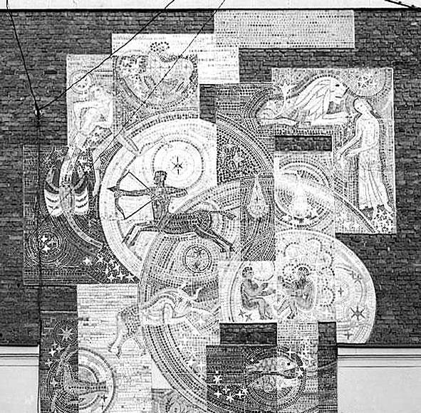 Но вернемся ко второй части площади Ленина. Северную часть площади украшает комплекс зданий, построенных в эпоху модерна (в 1907–1908 гг.) архитектором Федором Миритцем и гражданским инженером Иваном Герасимовым, представлявшими «Архитектурно-строительную контору Ф.Ф. Миритца и И.И. Герасимова», для служащих Финляндской железной дороги. В 1966 г. на брандмауэре одного из зданий по проекту художника В.П. Антонова создано керамическое панно «Человек и космос». В том году отмечалось пятилетие первого полета человека в космос.