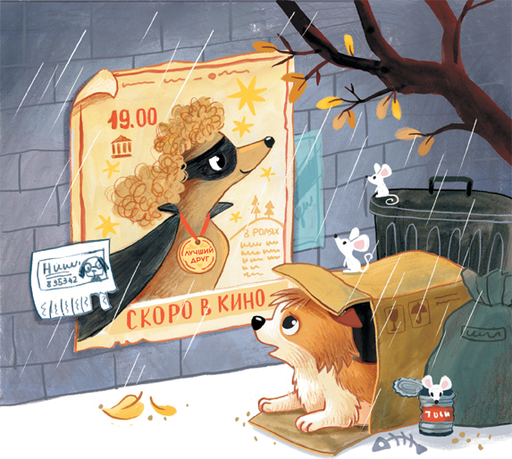– Пудель Алмаз, известный актёр, – Тим сделал акцент на слове «известный» и зарычал. – На фильм какой-то приглашали. На пуделе была медаль, на ней надпись – «Лучший друг», а по кругу, мелкими буковками – «Школа благородных собак». И я понял, что тоже хочу такую медаль! Я порылся в мусорке и нашёл справочник. Там был адрес школы, а ещё вот это – Тим снял с лапы бумажный браслет, развернул его и с выражением прочитал: – «Приходи к нам изучать Азбуку дружбы. Добрая атмосфера, вкусная еда, спортивная площадка и даже музыкальный ансамбль! Приноси анкету». И вот я здесь.