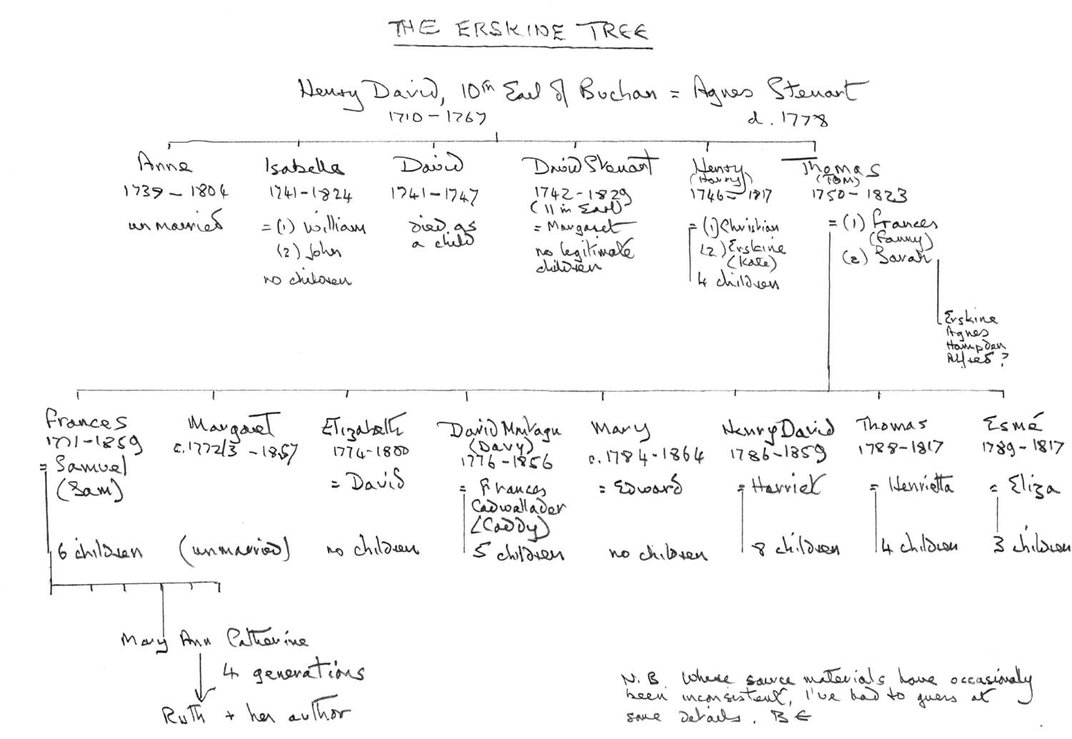 ‘Good lord, no. We’re talking generations back; hundreds of years even. The blue blood had worn extremely thin by the time it reached Mummy and, in me, well, it’s virtually non-existent! No more than the occasional effete gene.’ Ruth laughed. ‘But back in the eighteenth century one of my great-great-great-great-great-grandfathers,’ she was counting on her fingers, ‘a chap called Thomas Erskine, was Lord Chancellor of England. It sounded incredibly grand and impressive and sort of out of a fairy tale – what?’