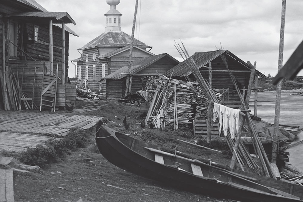 Рыбачий поселок. Село Сорока. Вид на церковь Зосимы и Савватия. Карелия. 1916 г.