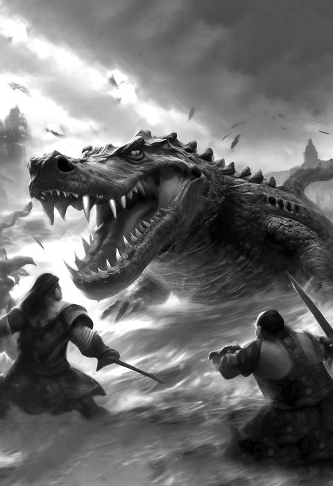 Вышел главный богатырьЗа ворота, на пустырь,Говорит: «Зачем пришли?Стену выстроили мы,Чтоб отвадить чужаковДа укрыться от врагов».А ему дают ответ:«Намерений дурных нет.Дайте золота, мехов,Натуральных нам шелков,Мёда сладкого кадушкуДа здоровую телушку [3].Серебра хотим довольно,Чтоб отдали добровольно,И чтоб каждому – по горсти,А не то нас ждите в гости».Услыхав такие речи,Богатырь расправил плечи,И сорвалось с языка:«Моя сила велика,И рука моя крепка,А зовут меня – Вольга.Вижу днём и вижу ночью,Вхож в берлогу, в стаю волчью,Превращаюсь в птицу-ворон,Не войти вам будет в город».Был Вольга рождён в грозу,Мать ступила на змею.Так, от змея в нужный срокРодился́ её сынок.Рос Вольга по типу тучи,Вырос сильным и могучим.Туча в шутку паренькаСвоим братом нарекла.У разбойников-хазарБыл вождём Кадыр Касар.Он в угрозу и словаНе уверовал сперваИ сказал в короткий срокВ городе собрать оброк [4],Развернул Кадыр отрядыВозле крепостной преграды.Им в осаду город взят,Вряд ли люди устоят.Знает толк хазар в разбое,Жжёт костры в широком поле.А тем временем ВольгаВороном к концу стал дня.Полетел скорей в лесаСлушать волчьи голоса.Знал Вольга язык зверей,Да из них кто всех сильней,Превосходство чтоб иметь,Выглядеть стал, как медведь.Применив медвежью власть,Приказал волка́м напастьНа хазарскую орду [5],Чтобы отвести беду.Волки грозно зарычали,Ночью на орду напали.Есть оружье у орды:Мечи, копья, топоры —Всё враги пустили в ход,Победив в один заход.В силе был их перевес,Убежали волки в лес.А наутро хан КадырТребованье повторилДа прибавил, что теперьБольше у славян потерь:«У меня ведь нет жены,Вы невесту мне должны,Да такую дайте мне,Что нет равной в красоте».Вот пришла вторая ночь,Не прогнать славянам прочьВражью крепкую орду,Собирают дань врагу.Даже княжескую дочь,Как хотел хазар в ту ночь,Собираются без дракиГрозному отдать вояке.По сказаньям – берегаОхранял эти тогдаСтрашный Ящер-крокодил,Он откуда-то приплылИ с тех пор в озёрах жилДа на всех страх наводил,А сейчас залёг на дно,Где совсем темным-темно.Чтоб ослабить вражью мощь,Богатырь просит помочьБлагородного налима,В водном царстве нелюдима.Просьбу выслушал налимИ сказал, чтобы за нимПлыл славянский богатырь,Да назад путь не забыл.Вот доплыли до коряги,Под которой жили раки.Говорит налим: «Эй вы,Хвост важнее головы!Пятитесь всегда назад,Я вас скушать буду рад.Но сегодня отпущу,За подсказку вас прощу:Где искать нам чужака,Что приплыл издалека?»Раки поняли, в ком дело,Показали путь налево.Вот плывут они туда,Впереди камней гряда.«Стой, – налим сказал, – вот тут,За грядой нас явно ждут.Незнакомец здесь живёт,Позови, он приплывёт.На спине его броня,А не рыбья чешуя,Зубы острые, как нож,В ряд стоят все зубы сплошь.Хватка пасти, как у льва,Сила плётки – у хвоста.Незнакомец, словно глыба,То ли ящер, то ли рыба».Отпустил Вольга налима,Тот поплыл скорее мимо.А Вольга враз без трудаПревратил себя в кита.Чужеземца стал он звать,Пир за помощь предлагать.Говорит: «Накрою стол,Будет всякий разносол.Ты нам только помоги,Наш народ убереги».Вдруг огромная грядаШевелиться начала.Из извилистых бороздПоявился мощный хвост.Согласился крокодил,Потихонечку поплыл.Для него важна еда,Ну а драка – ерунда.Пока плыли, всю дорогуКит испытывал тревогу.Как подплыли, кит пропал,Крокодил на лапы встал.Вышел из воды на берег