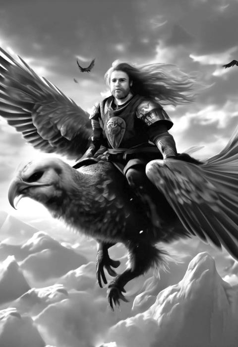 Про тот камень-АлатырьЗнает русский богатырь.Он решил лететь далече,Посадил к себе на плечиВмиг Микулу-силача.Заклинание шепча,Быстро птицей обернулся,В небо коршуном взметнулся,Сел на спину чёрной тучи,Так быстрей лететь и круче.Туча брата понесла,За верстой бежит верста.Пилигримы не устали,В небесах не заплутали.По небесному порталуК сказочному ареалуПуть до Ирия наметив,Помогал лететь им ветерДо тех пор, пока их ликДрева мира не достиг.Вот уткнулась туча в ветви,Что раскинул дуб заветный.Древо мира – старый дуб,Он растёт из камня тут.Дуб могучими ветвямиТянется над облаками,Упираясь прямо имиВ место, что зовётся – Ирий.Это место всем известно:Там красиво и чудесно,Там гуляют, как по суше,Боги и умерших души.Дуб стоит здесь на века,Облик поменял Вольга,Вот уселись они с другомНа верхушке того дуба,На ветвях сидит вещун —Птица – дева Гамаюн.Путников она встречаетИ, что будет, им вещает,Сладко речи говорит,Что никто не устоитПеред вещими речамиДа деви́чьими очами.Расспросил Вольга певицу,Что с народом их случится.Им сказала Гамаюн:«В помощь будет вам Перун.Справитесь с врагом вполне,Силу камень даст вдвойне.Бог Сварог писал три дняНа том камне письмена.Лишь когда вы их прочтёте,Силу духа обретёте.Алатырь – под этим древом».И сказала птица с гневом:«Надо вам поторопиться,Прочитав, домой явиться,Замышляют бой враги,Плачут дома земляки».Птица вестью припугнула,Горсть земли достал Микула:«Я распахивал тебя,Стань же пухом для меня».И землица помогла,Пухом под ноги легла.На неё, как на перину,Сели наши пилигримы,И, сынам благоволя,Опустила их земля.Так они и добрались,Письмена читать взялись.Святой камень АлатырьПоначалу белым был.Но по мере строк прочтеньяИ читающих прозреньяНакалялись его жилы,Появлялись в камне силы.Всё прочли богатыри,Силу духа обрели.Цвет сменился в камне том,Стал он камнем-янтарём.Будто солнца жёлтый шар,Ослеплял людей пожар.Ярким пламенем горя,Все кусочки янтаряПревратил огонь в песок,В золотых крупиц поток.И совсем сгорел янтарь,Уничтожена скрижаль [9].Но прошло одно мгновенье,И случилось возрожденье,Тот же камень АлатырьС письменами белым был.Подползает к ним змея:«Больше быть вам тут нельзя.