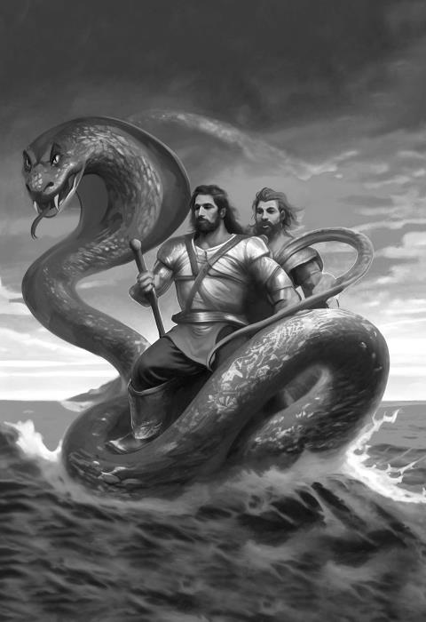 Моё имя – Гарафена,Там, внизу, морская пенаОмывает берега,Вам идти теперь туда.Я же здесь давно живуИ богатства сторожу,Письмена прочесть даю,А от золота гоню».Положив всё до концаВ центр змеиного кольца,Золоту переучётДень и ночь змея ведёт.Что слова её мудры,Слышали богатыри.Внемля мудростям змеи,К морю шумному пошли.Видят в море корабли,На корме горят огни.На судах плывут болгарыПродавать свои товары.В Византию путь лежит,С миром их туда визит.Кликнул Вольга Гарафену,Да сказал он ей про цену:«Отвези, – сказал змее, —На суда скорей нас теИ оставь нас на корме,Мешок золота – тебе».Покатать их на спинеЗа богатства, что в мешке,Гарафена приползла,На корабль их повезла.Так плывут богатыриНа спине большой змеиНа один из кораблей,В сундуках там сто вещей.Есть браслеты, ожерелья,В чашах – вина для веселья,Дорогой китайский шёлк,За который идёт торг,Золотых монет мешки,Расписные сапоги.Есть заморская приправаДля лечебного отвара,Да и мелкого товараВ сундуках было немало.Оказавшись на корме,Долг отдать пришлось змее.