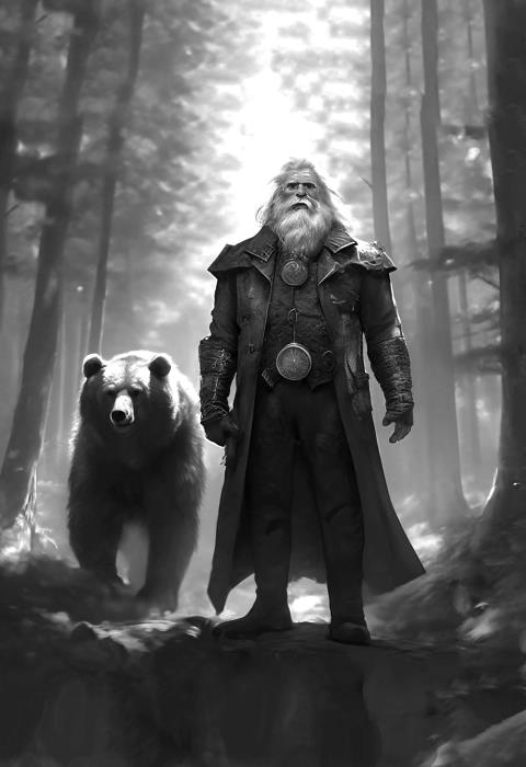 В глубине большого садаГоревали дед и баба,Уж который год подрядБыл пустым их старый сад.Не сорвать плодов у яблонь,И совсем не стало ягодУ растущей с краю вишни,Да кусты смороды сникши.С ними жил внучок Иван,Ему ум пытливый дан.Только был Ванюша боленИ собою недоволен.Пас коров он поутру,Убирал навоз в хлеву.Но устав потом, в итогеРастирал больные ноги.В этот год было повсюдуТяжело простому люду.С зерновыми очень худо,Не собрали даже пуда.И деревня вся грустит,Тут Иван и говорит:«Что горюете, дед с бабой?Что, скажите, сделать надо,От беды всех как спасти?»А ему: «Ты в лес пойди.Там живёт один старик,Он умом своим велик.Повстречай того ты дедаДа про нас ему поведай.Раньше старец не серчал,От беды нас выручал.Он спасал наш урожай,А теперь – хоть помирай.Его хата была с краю.Чуть беда идёт какая,Все к нему, да напрямикПросят: «Помоги, старик».Он заступник всех животных,Мудрый он и благородный.Видели мы как-то раз,Как коров он в поле пас,Отогнал волков от стада,Вся деревня была рада.Тот старик спасал наш род,И доволен был народ.Далеко ушёл он в лес,А зовут его – Велес.Жизнь деревни на кону [11],На поклон иди к нему,Да проси, чтоб не сердилсяИ обратно воротился.Стариков внук утешает,К Велесу идти решает.Бабка с дедом спохватились,Радостно засуетились:«Соберём сейчас подарки,Квас пусть будет в этой чарке,Молока нальём в посуду,Мёд дадим на сладость к блюду».Говорят: «Иди скорей,Свои ноги не жалей.Коли дед нас не простит,Голод смертный всех скосит.У него глубокий голос,В бороде волшебный волос.В нём магическая мощь,Превращается он в дождь.Только дёрнет старец волос,Как нальётся силой колос.Без дождя в полях всё сохнет,Без травы скотина дохнет».Положила бабка сыраДля славянского кумираИ сказала с сожаленьемВнуку перед отправленьем:«Ты, Иван, помощник слабый,Вот поправился бы кабы [12],Над хворобой [13] взял победу,Помогал тогда бы деду.Что ж, иди, внучок, к Велесу,Да не дайся в руки бесу».Тут слезу она смахнулаДа и с горестью вздохнула.Всё Ванюша уяснил,Напоследок всё ж спросил:«Как я сам его найду,Опознать в лесу смогу?Мне скажите напрямик,Как тот выглядит старик?»А ему: «Иди, не бойся,Ни о чём не беспокойся.Он в лесу среди деревьевСам найдёт тебя, поверь нам.Выйдет он к тебе медведем,Иль быком, иль кем-то третьим.Он и волком может стать,Звери все ему под стать.Может птицей обернутьсяДа домой помочь вернуться.Дом его – могучий лес —Полон сказочных чудес.Проверять тебя он будет,Злых людей Велес не любит,Не даёт в лесу шуметь —Это сразу ты подметь.А ещё Велес – провидец,Был народ наш очевидец,Что подвластно старикуЛюдям изменять судьбу.Он тому благоволит,Кто добро в миру творит».Вот, собрав все подаянья,Поклонившись на прощанье,К лесу поспешил Иван,Вскоре скрыл его туман.Увязался за ним кот,Потихонечку бредёт,Просит каплю молока,Не даёт Иван пока.Стало к вечеру темно,Кто-то тронул за плечо,Путников от страха му́тит,Отломал Ванюша прутик.Кто-то колет чем-то в спину,Вспомнил Ваня про осину.Показалось, что старухаПрошептала прямо в ухо:«Стой и дальше не иди,Там болото впереди.По болоту бродит Леший,Всяк боится его пеший,Вмиг запутает следы,Топи будут впереди».Чтобы с Лешим не водитьсяДа на дне не очутиться,Сел Ванюша на полянкуИ надел всё наизнанку,Лешему достал приманку —Сыра положил в лоханку [14].Прочитал молитву вслух,Перевёл немного духДа сказал: «Хра