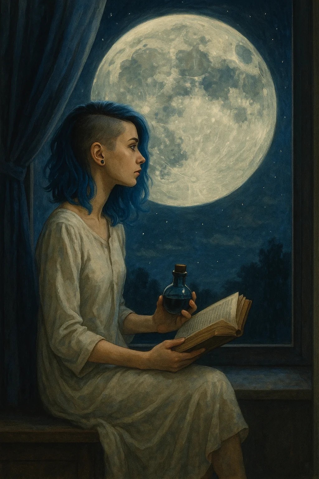 В комнате потемнело. Она снова просто стояла у окна, протянув руки к полной Луне, неожиданно засиявшей особенно ярко. Столп лунного света скрывал формы и одежду, я различил только прелестную голову моей лучшей половины, всё остальное сливалось в слепящее глаза пятно. И хотя я прекрасно знал, что это всего лишь иллюзия, невольно залюбовался.
