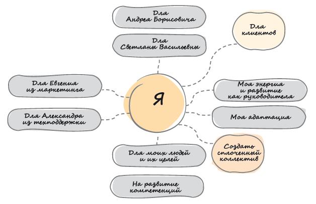 – Если все цели переделать в форму «Для кого», что будет? – спрашивает Татьяна. Я быстро перерисовываю.
