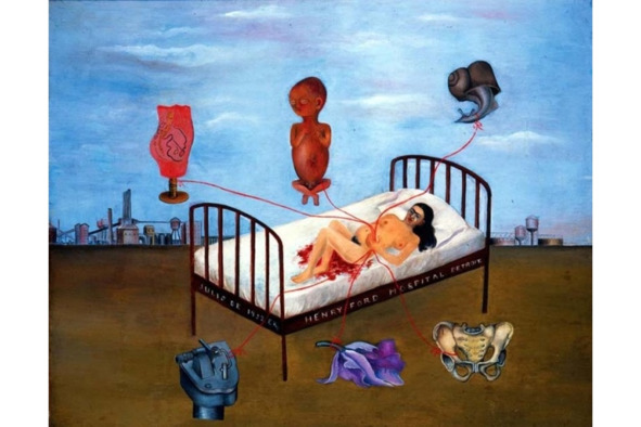 Когда она в Штатах потеряла второго своего ребенка, то прямо в больнице написала картину «Госпиталь Генри Форда». Это исповедь женщины, утратившей не только своего ребенка, но и свою женственность, свой род, свое предназначение и будущее.