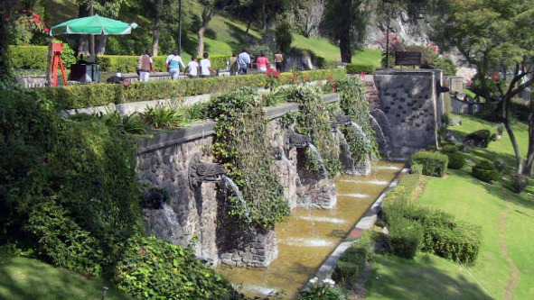 Кстати, о мексиканском Синкретизме. Гуляя по холму Тепияк, я наткнулся на фонтан. Ну фонтан и фонтан, что особенного-то, скажите мне Вы. Да собственно ничего, кроме того, что в центре Христианской Веры обоих Америк находиться фонтан в виде дохристианских языческих символов