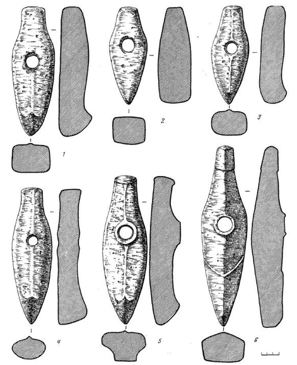 Каменные сверленые топоры-молотки культуры шнуровой керамики Восточной Прибалтики.