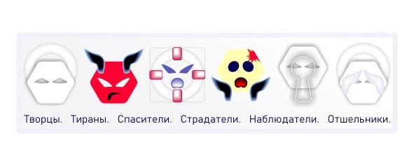Как бы нам ни претило разделение людей на «типы» и «виды», мы разделим их на типы и виды, чтобы показать, почему мы это не любим. Для иллюстрации нелюбви представим, что существуют люди, приверженные только одной роли в общении и одному типу коммуникации, что представлено на рисунке ниже.
