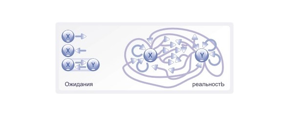 Если называть вещи своими именами, то термин «линия» в общении не оправдывает себя. Правильнее называть «место обмена сообщениями» не линией, а ПРОСТРАНСТВОМ. Мы не посылаем сообщения «по прямой» как пули; информация проделывает долгий и извилистый путь, пока попадает к нам, доходит от нас до других. Мы переплетены с окружающей реальностью, «обмениваемся ненаправленными сообщениями в коммуникационном пространстве».