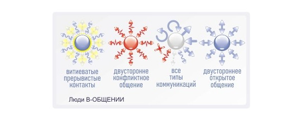 Заменив «исходящее» на «поглощающее», «замкнутое», «взаимное» получим еще 12 типов общения.
