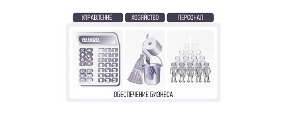 Сюда входят финансовое управление, кадровая служба, специалисты по хозяйственной деятельности.