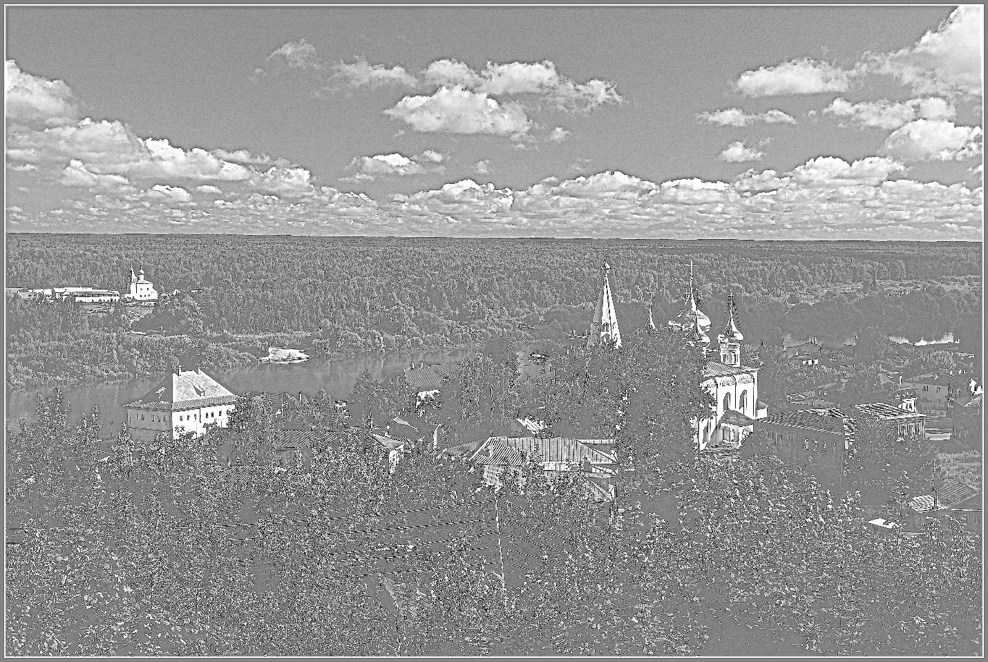 Ее сразу окутала волна медового аромата. Какая-то волшебная травка цвела по берегам и погружала и реку, и городок в чистый мед. Грело солнышко, заливались на все голоса птички, ветерок лениво шевелил кроны деревьев в лесу на другом берегу. Девушка дошла до середины понтонного моста, оглянулась на город – бывает же такая красота! Храмы поднимались по холму один за другим, наверху сливался с небом монастырь, еще один виднелся над крышами. Золотом сияли на солнце купола собора, чуть ближе к реке – старые приказные палаты с домом градоначальника, резное крыльцо прямо на реку, на закаты смотрит. Вот ведь место для строительства дома выбрал тогдашний воевода! Прямо как нынешние, самые лучшие места – под коттеджи.