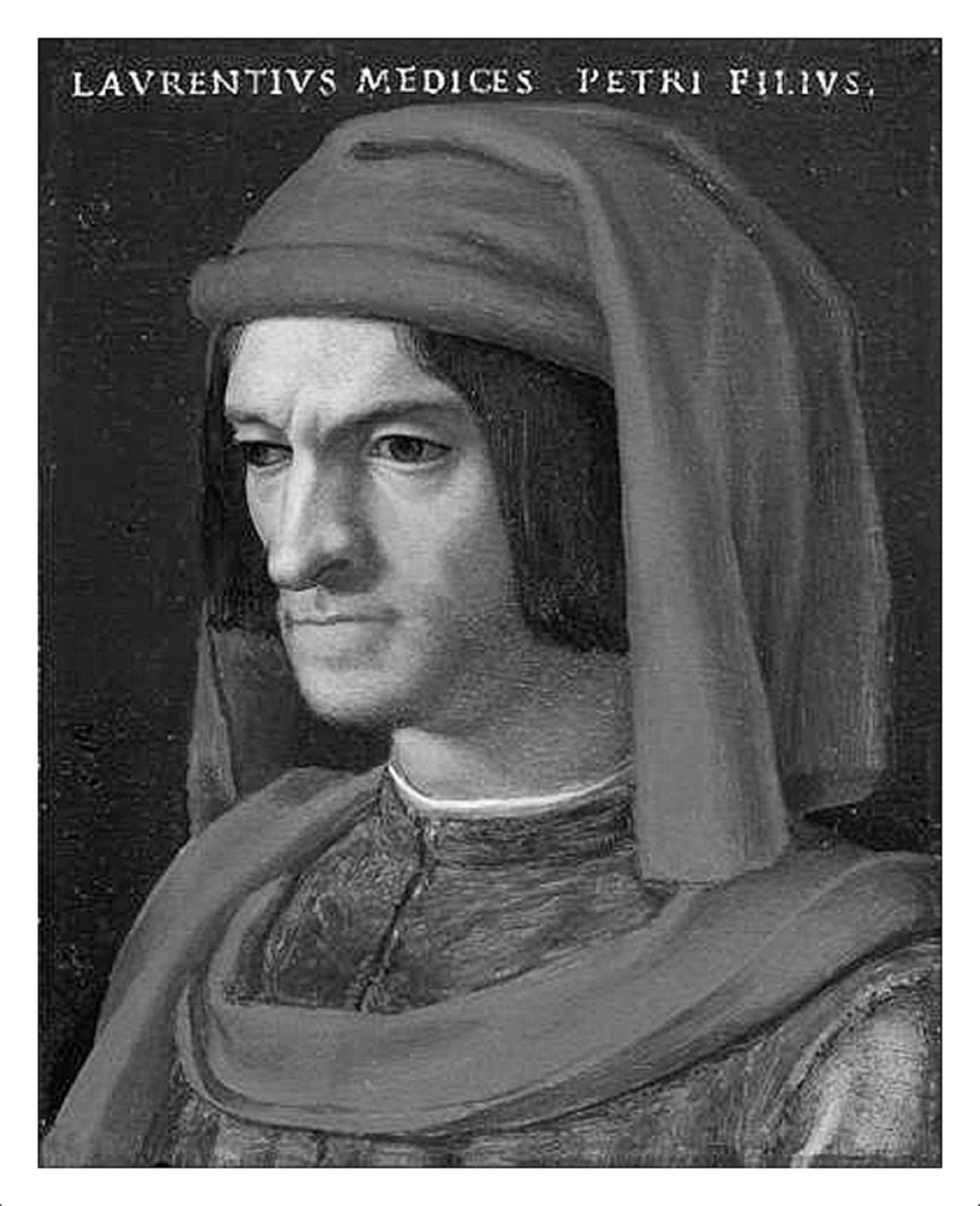 Среднего роста, мускулистый, с некрасивым лицом, кончик длинного носа свернут набок – так выглядел Лоренцо де Медичи. Плоская переносица придавала его голосу своеобразное звучание: одним он казался писклявым, другим механическим. Нижняя челюсть сильно выдавалась вперед. У него было слабое зрение, он не чувствовал вкуса и запаха, в общем, пошел весь в мать! Но мать передала сыну не только некрасивую внешность, но и невероятную харизму. Не было человека, который не попадал под обаяние Лоренцо, проведя в его обществе некоторое время. Забывалось все внешнее, собеседник был моментально покорен.