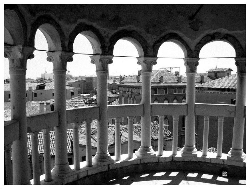 Из внутренних помещений девушка вышла на балконы, оттуда поднялась на последний ярус знаменитой лестницы и застыла, любуясь видом. Перед ней простиралась Венеция: крыши, колокольня Сан марко. Дворец Дожей, лагуна и далекие острова.