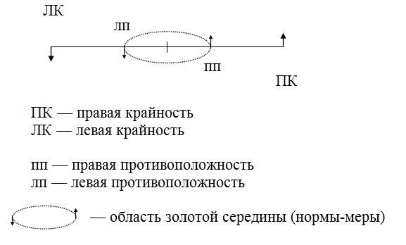 Золотая середина – середина между крайностями, единство противоположностей, исключающее крайности.