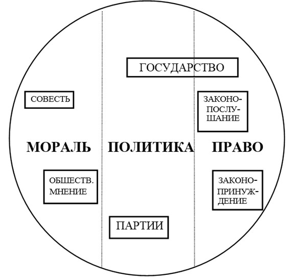 Мораль определяет внутреннее состояние и внутренние границы здоровья общества, а право очерчивает его внешние границы, служит, так сказать, черепной коробкой общества (общества – в смысле общежития), предохраняющей его нежное "тело" от грубых воздействий.