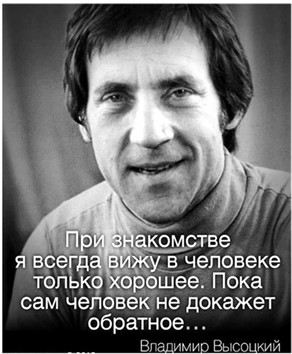 Мой тезис: «Будем лучше думать о людях, и они на самом деле станут лучше»[11]. Мысль, заключенная в тезисе, не нова. Нечто подобное говорили и раньше, например, М. Горький. Вот смысл одного из его высказываний: "Говорите человеку о том хорошем, что в нем есть, и он станет лучше".