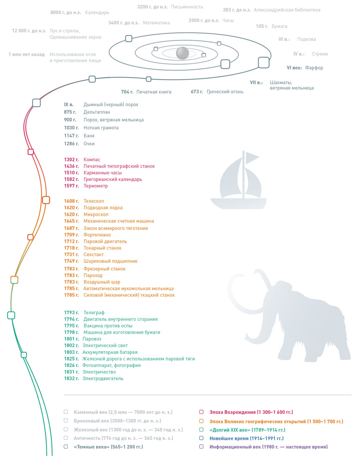 Рис. 6. Долгосрочная временная шкала технологий. Из далекого прошлого в наше время и будущее