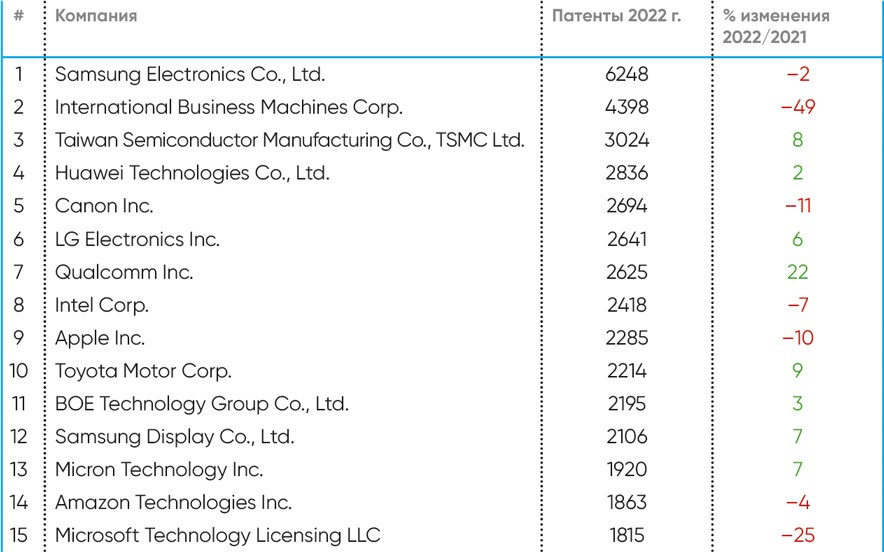 Как отмечалось ранее, в последние несколько десятилетий именно корпоративный сегмент стал в развитых странах локомотивом научно-технического прогресса и обеспечивает основной объем инвестиций в исследования и разработки, имея эффективные механизмы монетизации научных достижений. В этой связи довольно интересно выглядит не только перечень основных быстрорастущих научных категорий, где наблюдается самая высокая динамика патентной активности, но и компании, проявляющие наибольший интерес к исследованиям в этих областях, инвестирующие в технологии завтрашнего дня. Подобные исследования – это возможность вместе с крупнейшими технологическими организациями заглянуть в будущее, сформировать приоритеты в инновациях, порождающих товары и услуги, которыми мир будет пользоваться через несколько лет. И именно они станут источником роста стоимости, прибыли и дальнейшего развития компаний.