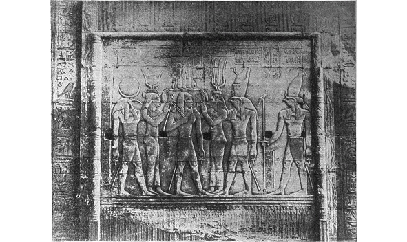 Птолемей IV среди египетских богов. Рельеф в храме в Ком-Омбо. II в. до н. э. Гипнотизеры-боги в масках контролируют с помощь чар фараонов.