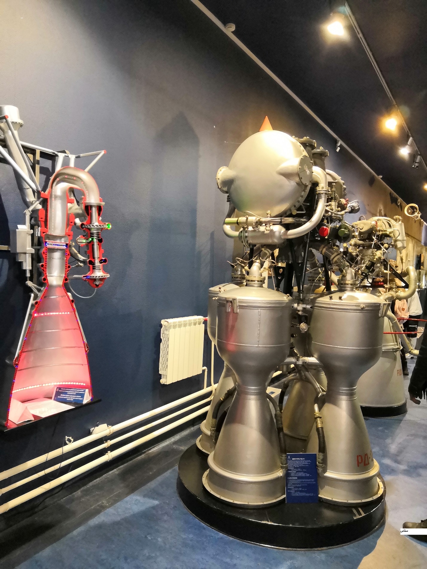 А в это же время, в Казани, на заводе № 16, работала другая группа конструкторов под руководством В. П. Глушко, над созданием самолётного ускорителя с ЖРД. Это был первый жидкостный реактивный двигатель РД-1, который разработан в этом коллективе. РД – 1 использовался в качестве вспомогательного двигателя-ускорителя для улучшения взлётных, скоростных и высотных характеристик целого ряда самолётов, в том числе пикирующего бомбардировщика ПЕ – 2. В тот период опытно-конструкторское бюро было укомплектовано высококвалифицированными учёными, конструкторами, экспериментаторами, технологами, металлургами, химиками. С 1942 по 1946 год заместителем главного конструктора двигателей по лётным испытаниям здесь работал С. П. Королев. По стечению обстоятельств на казанском заводе № 16 сосредоточились учёные и талантливые двигателестроители, где проводились и серьёзные опытно-теоретические проработки теории ЖРД. В сороковых годах это ОКБ разработало для форсирования маневров самолётов целое семейство авиационных ЖРД типа РД -1 с насосной подачей азотной кислоты и керосина [2], неограниченным числом повторных автоматизированных пусков, с регулируемой тягой и максимальной тягой у земли от 300 до 900 кг. Однокамерный двигатель РД – 1 тягой 300 кг и трехкамерный РД – 3 с тягой 900 кг имели эфиро-воздушное зажигание от свечи накаливания, а однокамерные двигатели РД – 1Х3 тягой 300 кг и РД – 2 тягой 600 кг имели химическое зажигание от пусковой жидкости (карбинольное горючее) [3]. Двигатель с химическим зажиганием, который демонстрируется в музее Космонавтики и ракетной техники имени Глушко в Санкт Петербурге [4] показан на следующей фотографии.