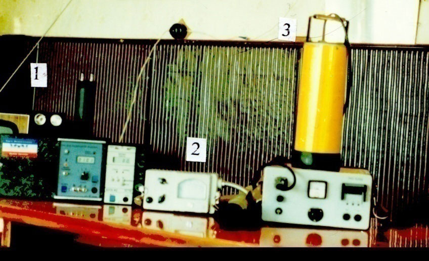Рис. 2.2 Приборы для измерения радиации. 1-радонометр РРА-01 м, 2-сцинцилляционный радиометр СРП-68, 3-спектрометр РКП-305 (радий, торий, калий-40). Фото автора
