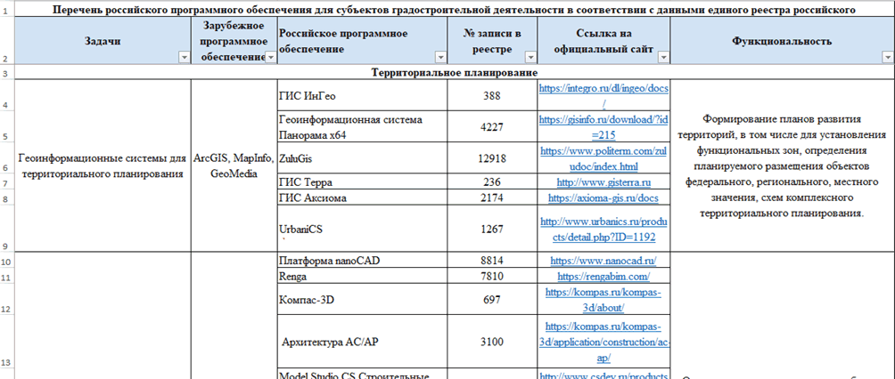 Рисунок 6. «Перечень российского программного обеспечения для субъектов градостроительной деятельности» от Минстроя России