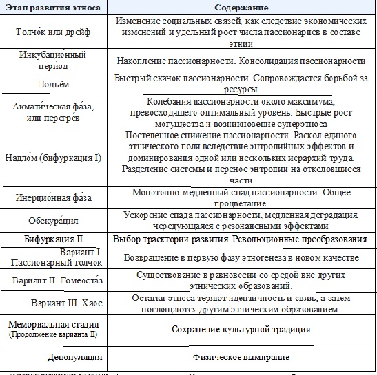 данными, появление более 10% пассионариев в составе этнии способствует пассионарному толчку. После проведённого моделирования, представляется, что после начального импульса пассионарность этнии или консорции увеличивается в течение нескольких поколений. Одновременно с этим система расширяется, сначала становясь конвиксией или субэтносом в рамках другой системы. В определённый момент она абсорбирует другие этнически родственные группы и превращается в отдельный этнос. Если новое образование не сталкивается с более сильным конкурентом614, то продолжает расти до уровня метаэтноса, а при жёсткой централизации становится суперэтносом. Столкновение с более сильным противником не обязательно заканчивается гибелью этноса. При определённых обстоятельствах он переходит в состояние гомеостаза и продолжает своё существование в виде конвиксии, химеры615 или ксении616. В условиях агрессивной среды большинство их представителей находятся в состоянии обскурации и, будучи не в состоянии восстановить „былую славу” постепенно ассимлируются, а их остатки превращаются в реликт. Возрождение этноса в данных условиях практически невозможно, поскольку человеческого материала для возникновнения резонансного эффекта явно недостаточно617.