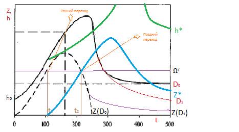 По окончании перехода и истечении времени Δt система достигает точки М*. В этой точке возможны два исхода: