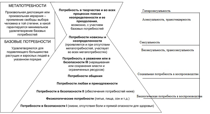 Независимо от этической стороны вопроса, метапотребности выражаются в поиске неопределенности и ее преодоления в сфере, доступной для конкретного индивидуума, и приносят удоволетворение самим процессом преодоления и/или результатом. Это явление может быть классифицировано как пассионарность155, и своей основе имеет два рода мотивации. В основе первого вида лежат латентные метапотребности. Их природа рождена одной или несколькими базовыми потребностями, а удовлетворение совмещено во времени и пространстве полностью, частично или игровым способом. Второй вид, метапозитивные потребности, связан с созидательной деятельностью и/или психическим напряжением преодоления трудностей156.