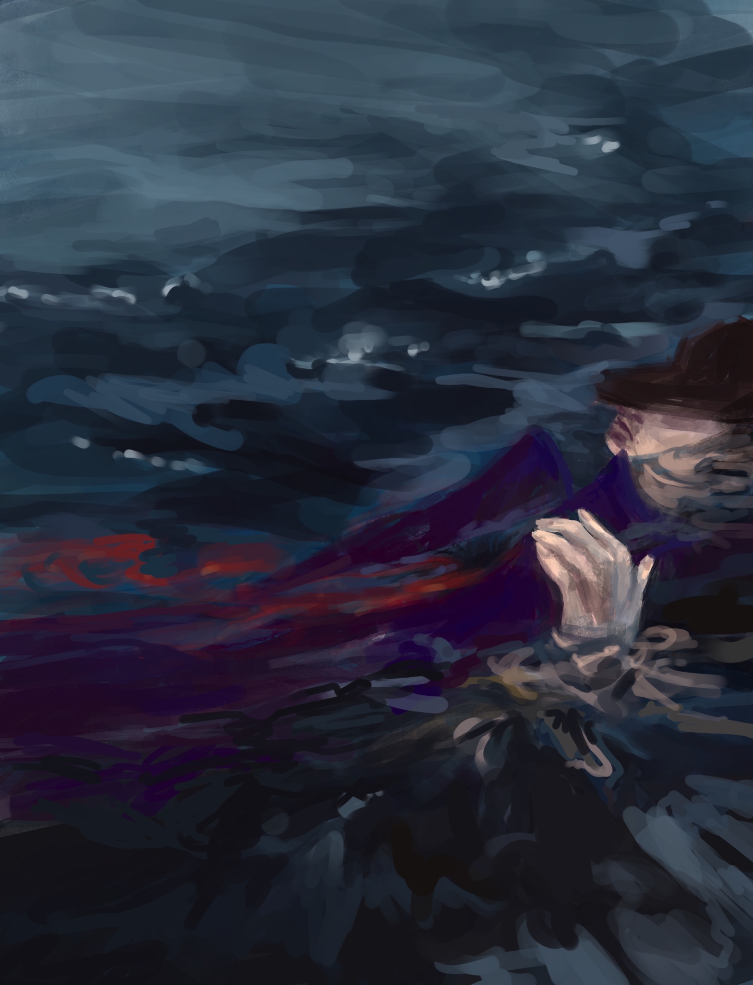 Рынок полон красок, звуков и хруста купюр. Здесь царит страшная бедность, и даже отчаяние – вечный ее спутник – замерло в страхе быть задушенным истошными воплями, доносящимися из каждой будки. Все бурлит, и кажется, что в этом месте ни одна деталь не может существовать отдельно, сама по себе – они дополняют друг друга, в итоге рождая страшное чудовище людских надежд. Бледный и болезненно худой мальчик лет десяти, робко стоящий у кованой загородки, с испугом смотрит на пухлого мужчину у мясных развалов; тучный потный старик сидит на лавочке, торгуя новыми сапогами; напротив – пожилая женщина в ситцевом платочке и с иконкой на шее, сгорбившись так, что ее почти не видно за столом с небрежно раскинутыми льняными скатертями, что-то нашептывает себе под нос, то поднимая, то опуская голову. Только раз посмотрев ей в лицо, сильно изрезанное морщинами и испещренное ямками, можно заметить страшный пустой взгляд, говорящий о давно смиренной гордости и нынешнем полубезумии. Но вдруг женщина замерла и уставилась куда-то вдаль, в сторону моста. Ее глаза раскрылись насколько это возможно, морщинистое лицо превратилось в застывшую маску ужаса, а кажущиеся синими из-за проступающих вен дряхлые руки внезапно задрожали и начали описывать в воздухе крест. Она упала на скользкую брусчатку, поднялась на колени, сухие серые губы налились кровью и заалели, невольно испуская странные панические крики. Старушка сорвала платок, скомкала его, оголив наполовину лысую голову, и наконец издаваемые ею безудержные вопли сформировались в две разборчивые фразы, выкрикиваемые попеременно. «Боже, спаси!», – кричала она, крестясь, и, после недолгой паузы: «О, черт!». Один за другим люди, собравшиеся на площади, также начали всматриваться в точку, куда впилась глазами старушка-текстильщица, и увиденное отражалось на каждом: кто-то взывал к богу с молитвами, кто-то делал попытки убежать, но каменел от испуга, кто-то размахивал руками и толкал остальных. А там, куда вскоре было обращено внимание всей площади, в самом центре поднимавшегося над рекой моста, стоял закутанный в синий плащ человек. Никто не мог разглядеть его лица или рук – все тело было скрыто этой мантией, которую дополняла черная шляпа на голове. Человек постоял на мосту несколько секунд, а затем, широко раскинув руки, склонился в сторону речной глади и камнем упал вниз. Громкий всплеск вывел людей из оцепенения, толпа ринулась к мосту. Кто-то вглядывался в воду, кто-то закрывал рукой глаза детям, а кто-то сочувственно всхлипывал. Надежды одних и предвкушения других не оправдались – человек в синем плаще не всплыл.